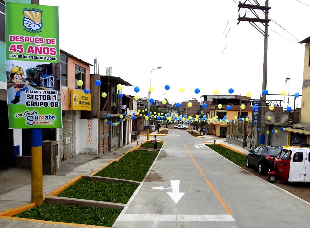 La arena y la tierra que pisaron por más de 45 años los pobladores fundadores del Grupo 08 del Primer Sector de Villa El Salvador, se ha convertido en una nueva infraestructura vial de pistas y veredas de concreto, inaugurada por el alcalde Guido Iñigo Peralta.