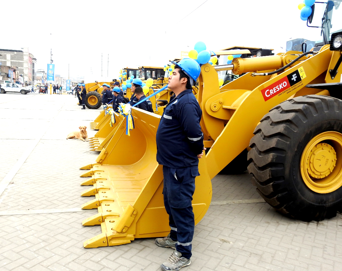 Tras ser bendecidas, la nueva maquinaria compuesta por 2 motoniveladoras, 2 cargadores y 2 mini cargadores fontales, comenzaron a trabajar en la avenida Revolución en el tramo desde Vallejo hasta Mariátegui.