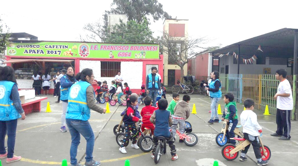 La participación del voluntariado juvenil de ambas comunas fue importante además del grupo de pedagogas (reconocidas por el MINEDU) los cuales diseñaron sesiones de aprendizaje sobre movilidad sostenible junto con los docentes del colegio.