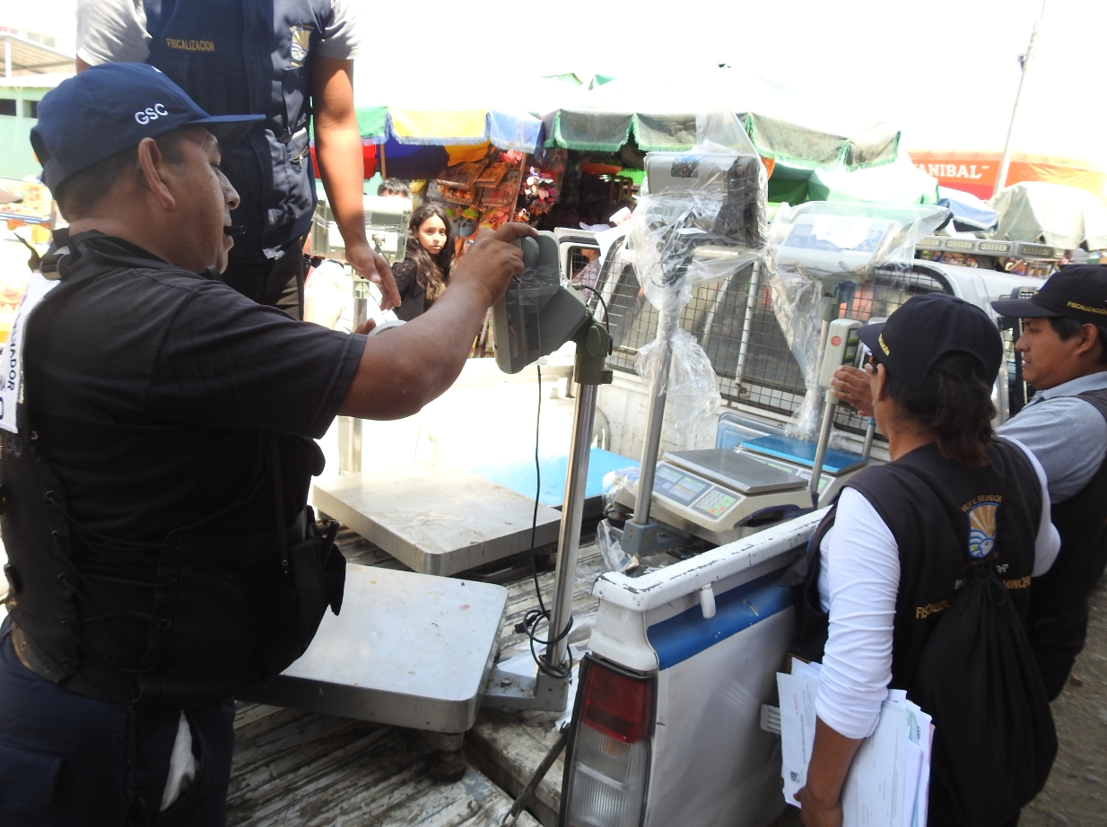 La municipalidad de Villa El Salvador en coordinación con la Policía Fiscal realizó un operativo inopinado en el mercado Unicachi para verificar que las balanzas estén calibradas con peso exacto, decomisando 14 de estas por presentar adulteración en sus pesos.